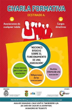 Esta charla pretende ofrecer herramientas formativas en aspectos relacionados con la organización, gestión y comunicación que favorezcan la labor de las personas que integran las asociaciones, junta directiva, colaboradores y voluntariado.Temario: