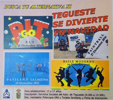 Entre las acciones que se llevarán a cabo están una visita al PIT en el Recinto Ferial de Tenerife (lunes 26 de diciembre), Paintball (martes 27 de diciembre), Patiland La Laguna (miércoles 28) y una actividad de baile moderno (jueves 29)