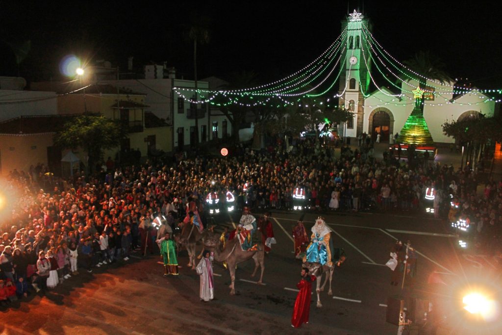 El Ayuntamiento de la Villa fue el encargado de organizar la Cabalgata de sus Majestades de Oriente, una cabalgata que comenzó a partir de las 20:00 horas desde la calle El Casino (frente a la sede de los Bomberos de Tegueste) y que recorrió las principales calles del municipio (El Casino, calle Nueva y Prebendado Pacheco) hasta llegar a la Plaza de San Marcos. Durante su trayecto por las calles del Casco de la Villa, los tres Reyes Magos a lomos de los camellos, estuvieron acompañados por carrozas, la Bandas de Tambores y Cornetas de Tejina, la Fanfarria de Los Silos, los Bomberos de Tegueste, la Banda de Cornetas y Tambores de Valle de Guerra, diferentes agrupaciones folclóricas del municipio y personajes de Disney.