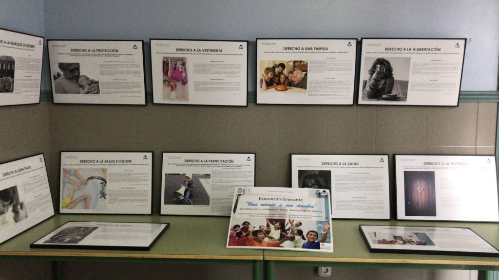 La exposición consta de 18 fotografías acompañadas de un breve texto o frases hechas por niños y niños o por personas que trabajen con Infancia y con las que se quiere concienciar a la población sobre los derechos de la infancia a la educación, a la vivienda (no sólo donde protegerse del frío, sino un hogar donde pueda vivir con comprensión, tolerancia, amistad, amor y protección), la igualdad (derecho a recibir cuidados especiales, tratamiento y educación especiales, cuando su condición y situación lo requiera), la igualdad de género (todos los niños y las niñas son iguales) y a la protección (de situaciones peligrosas, deben ser protegidos contra todas las formas de abusos y explotación).