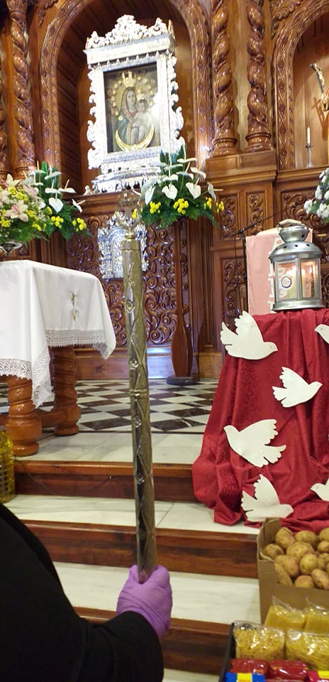 El último día de la Novena se concluye con la celebración de la Santa Misa, presidiendo la celebración el párroco D. Miguel Ángel García con presencia de una pequeña representación de la Hermandad de Ntra. Sra. del Socorro, constituida en el año 1903, y que muchos de los que la constituyen actualmente, hombres y mujeres, son personas de cierta edad y que por lo tanto son personas de riesgo frente al coronavirus por lo que es desaconsejable por las autoridades sanitarias asistir a lugares concurridos aunque tengan mascarillas y se sigan todas las normas de protocolo de higiene frente al Covid-19.