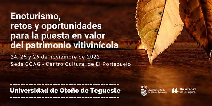 Curso de Extensión Universitaria organizado por el Vicerrectorado de Cultura, Participación Social y Campus Ofra y La Palma en colaboración con el Ayuntamiento de la Villa de Tegueste, dentro de la programación de la convocatoria de Cursos de Extensión Universitaria «Universidad de Otoño de Tegueste 2022», que se celebrará los días 24, 25 y 26 de noviembre de 2022 en el municipio de Tegueste.