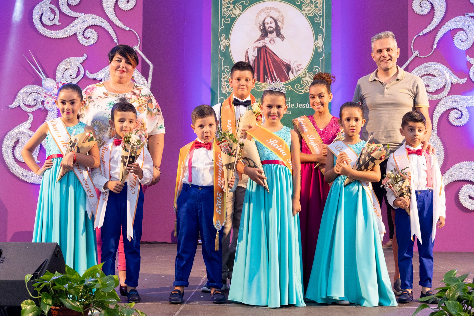 Las Fiestas en honor al Sagrado Corazón de Jesús de Pedro Álvarez, organizadas por la Comisión de Fiestas del barrio teguestero en colaboración con el Ayuntamiento, han nombrado este fin de semana a su reina y a su míster infantiles en una gala en la que participaron seis candidatos y candidatas. El título de reina infantil recayó en la niña Ainhoa Báez, mientras que Marcos Yahvé Galván fue elegido como míster de los más pequeños.
