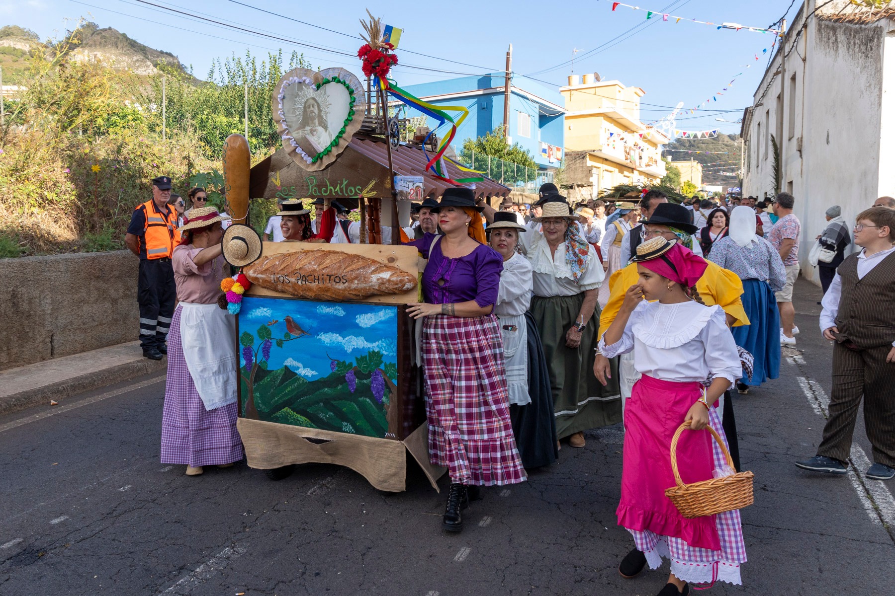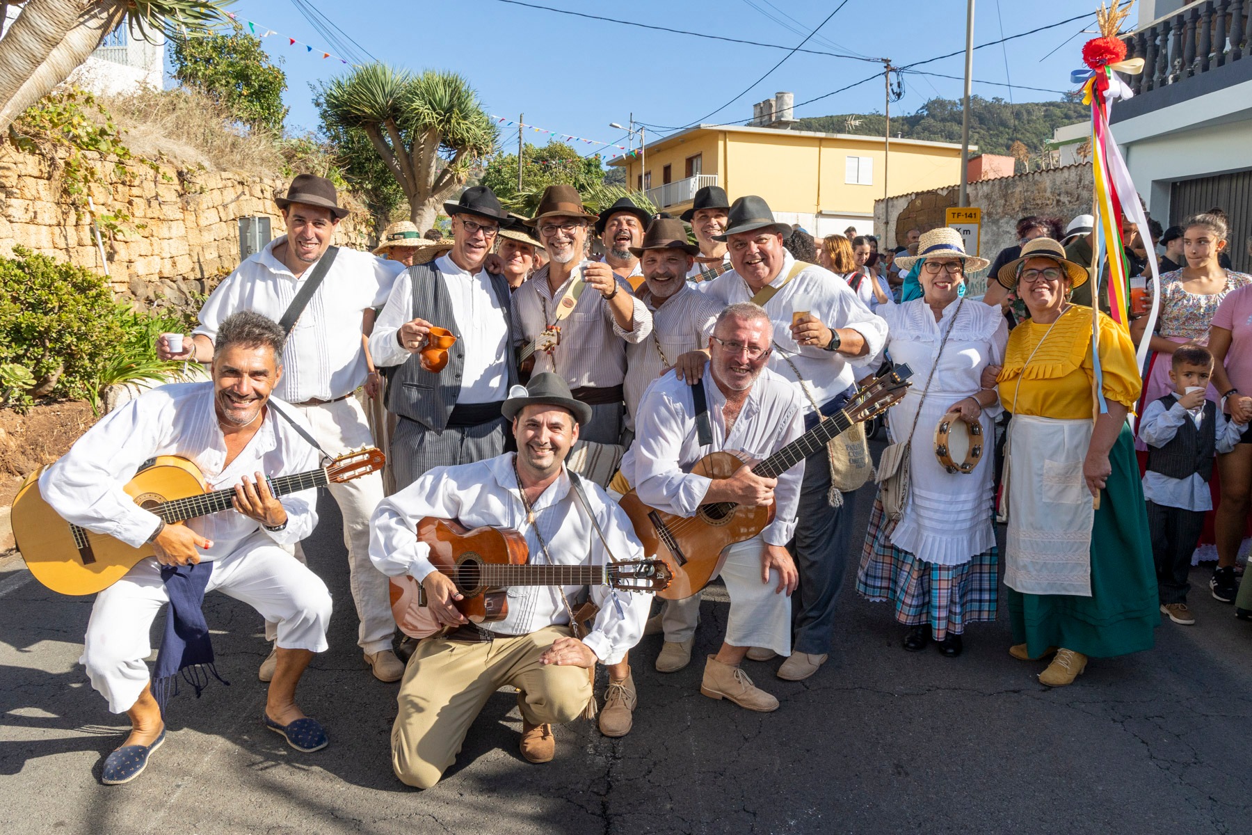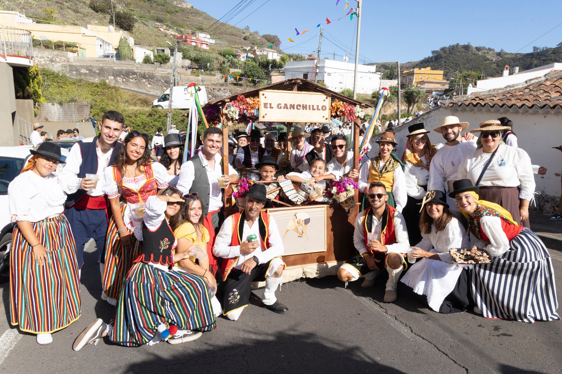 En el paseo romero, encabezado por la Danza de las Flores, el Barco de Pedro Álvarez y algunas yuntas, participaron más de 20 carros y varias parrandas como la propia del barrio, Lava y Picón, Tercera Edad de Tegueste, Sandunga, Amigos de Guamasa e Ilusión Canaria, que pusieron el ritmo en la pasada jornada.