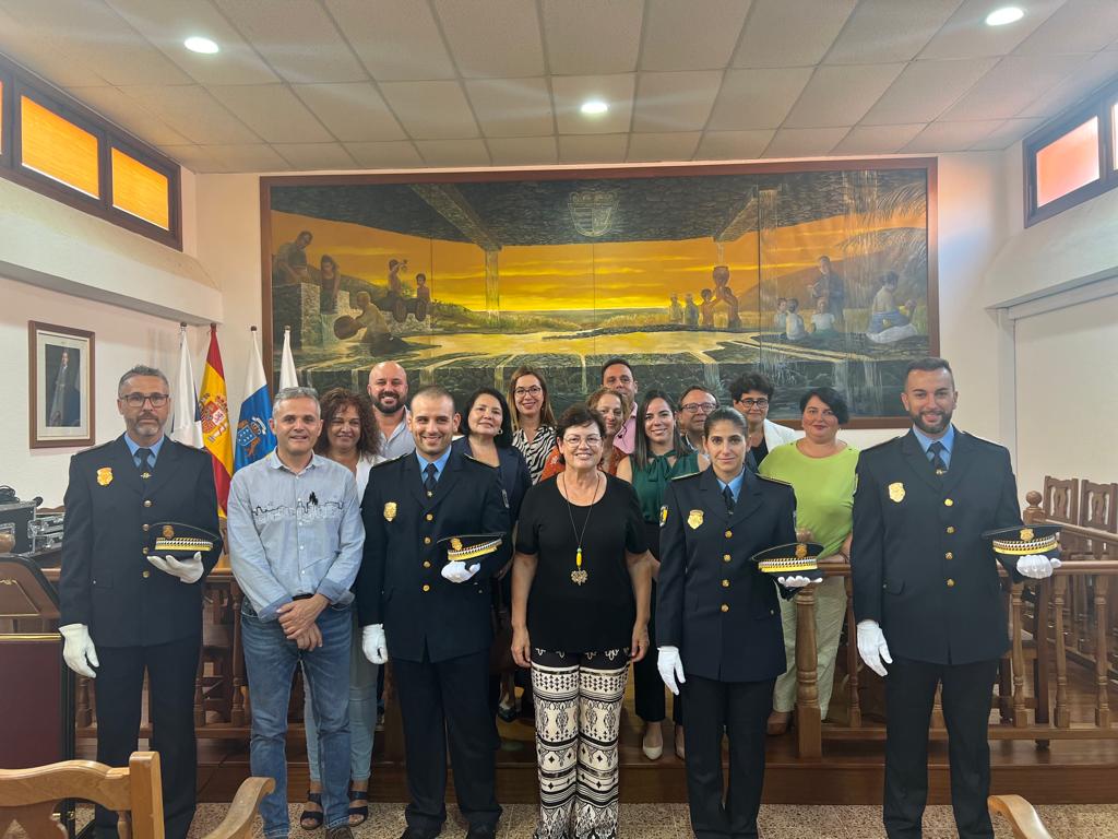 El Salón de Plenos del Ayuntamiento de la Villa de Tegueste acogió ayer el acto de presentación de los tres nuevos efectivos de la Policía Local, que ya habían tomado posesión el pasado mes de abril. El acto contó con la participación de la alcaldesa, Ana Rosa Mena, y del jefe de la Policía Local de Tegueste, así como de miembros de la Corporación, familiares y amigos.