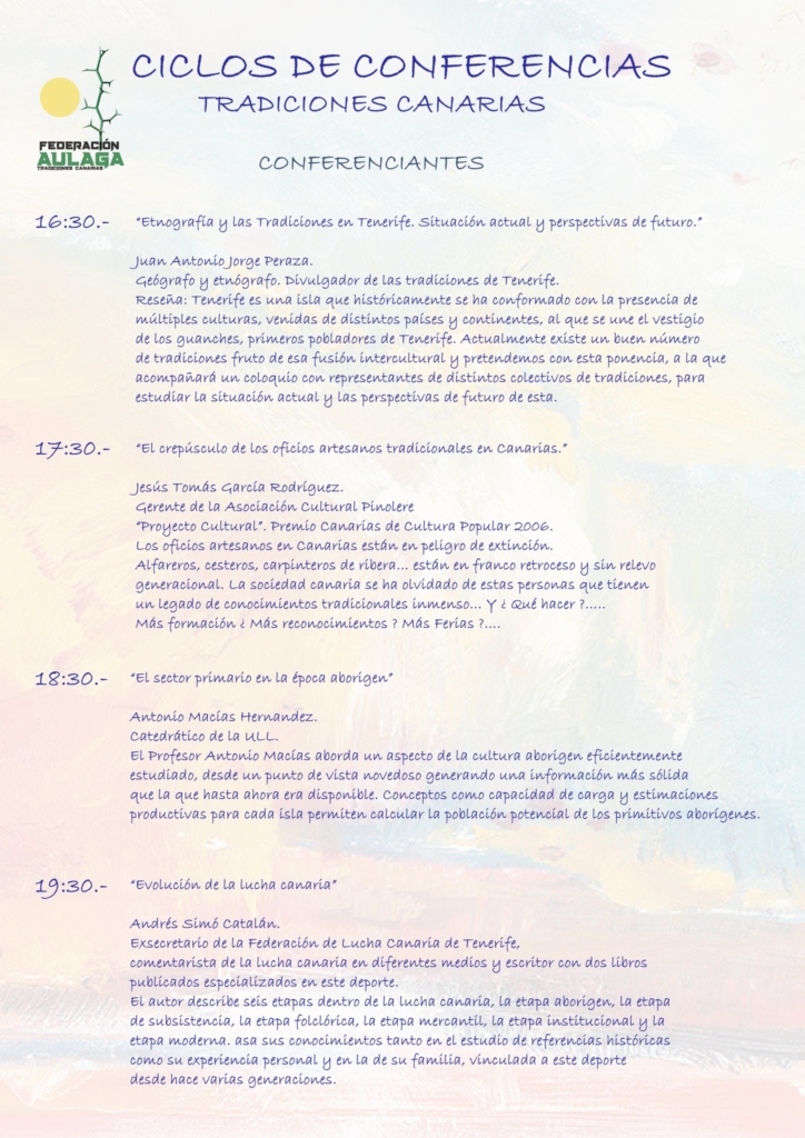 Ciclos de conferencias: Tradiciones canarias InfoTegueste2024-06-13T14:19:32+02:0012/06/2024| Comparte la noticia! FacebookXLinkedInWhatsAppCorreo electrónico Artículos relacionados Programa de las Fiestas de San Marcos Evangelista Programa de las Fiestas de San Marcos Evangelista 28/03/2025 | Sin comentarios Comienza la VI Feria de Artesanía Navideña de Tegueste Comienza la VI Feria de Artesanía Navideña de Tegueste 11/12/2024 | Sin comentarios El Ayuntamiento de Tegueste presenta su programación navideña 2024 con una agenda llena de actividades para toda la familia El Ayuntamiento de Tegueste presenta su programación navideña 2024 con una agenda llena de actividades para toda la familia 01/12/2024 | Sin comentarios Tegueste da inicio a las Fiestas de San Andrés La Padilla 2024 con una programación que aúna cultura, gastronomía y ocio Tegueste da inicio a las Fiestas de San Andrés La Padilla 2024 con una programación que aúna cultura, gastronomía y ocio 19/11/2024 | Sin comentarios Ruta: De Parrandas y Bodegas por San Andrés Ruta: De Parrandas y Bodegas por San Andrés 17/11/2024 | Sin comentarios