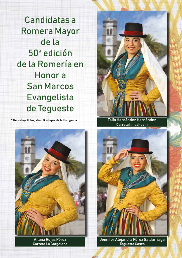 Siete jóvenes teguesteras optarán al cetro de la Romera Mayor de la L Romería de San Marcos