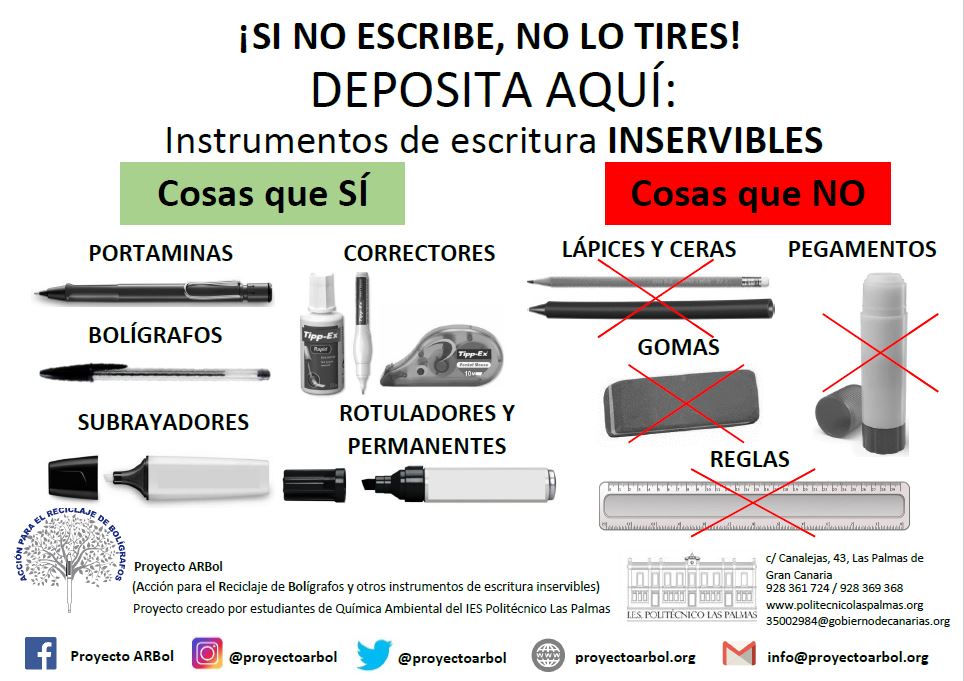 Campaña de reciclaje de bolígrafos y otros materiales de escritura inservibles