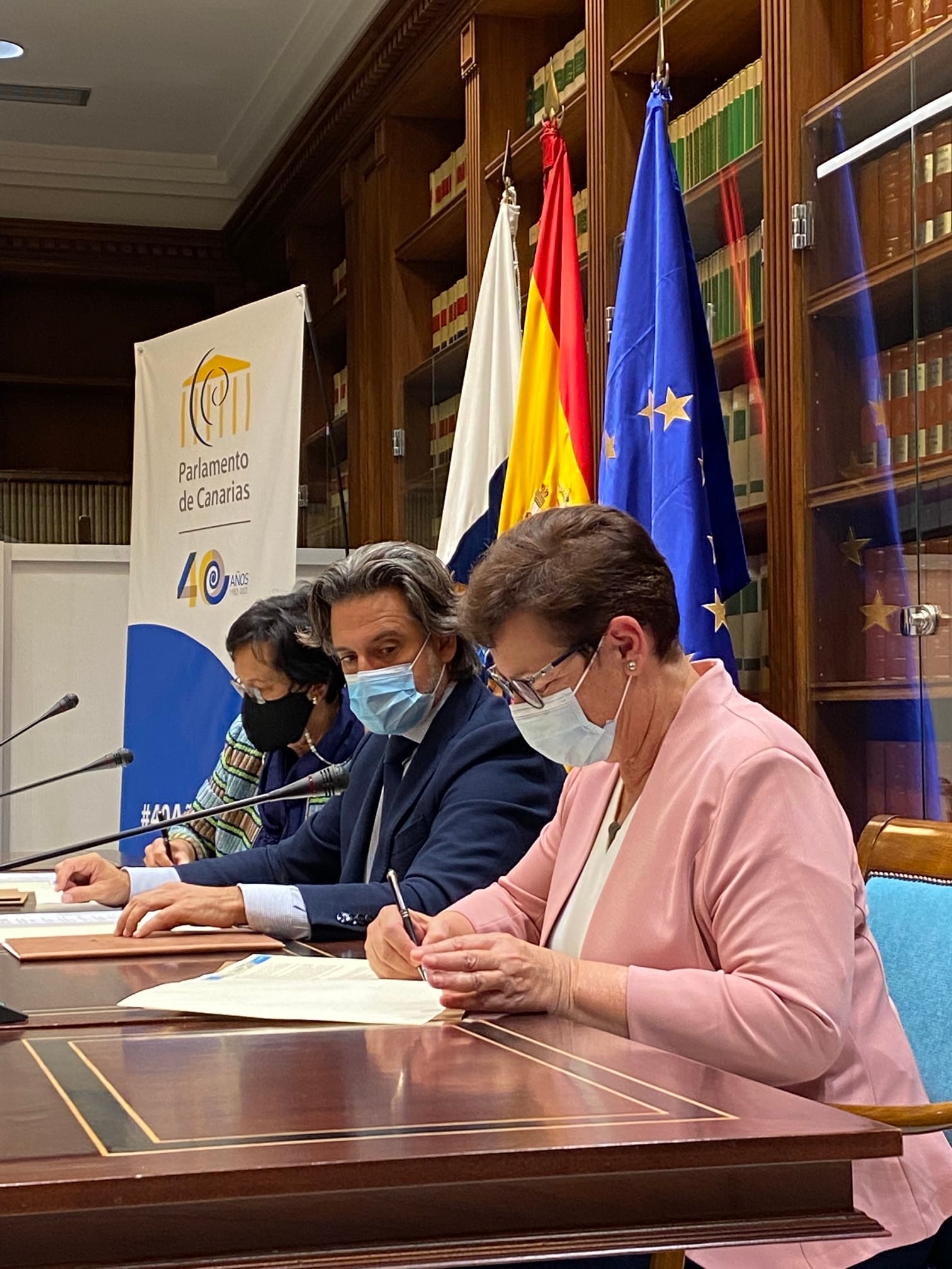 El Parlamento de Canarias acogió la firma del convenio con esta entidad social con la rúbrica de otros cuatro municipios Desde este