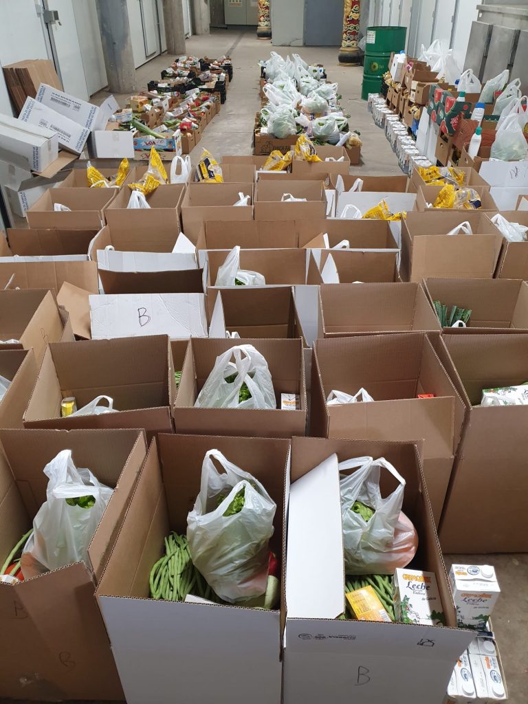 Los lotes de productos incluyeron alimentos procedentes de la recogida organizada por la Parroquia de Nuestra Señora del Socorro el pasado 30