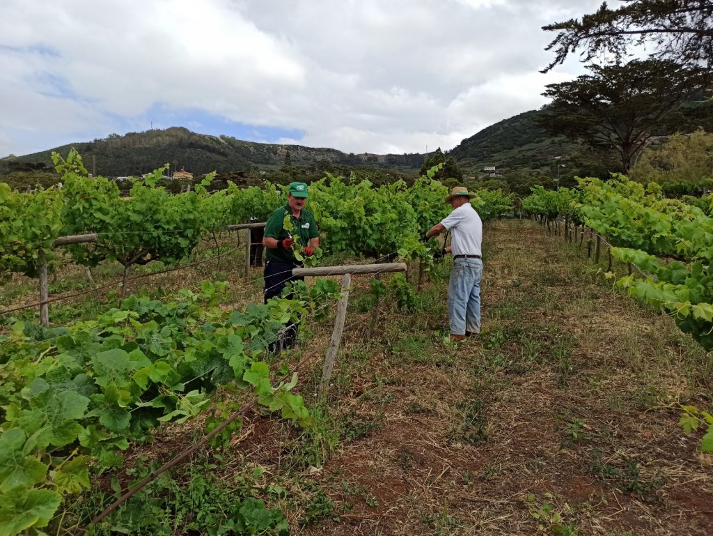 Varios miembros de la Directiva de la Asociación Vitivinícola de Tegueste (AVITE) finalizaron la labor de deshojado en la viña experimental de